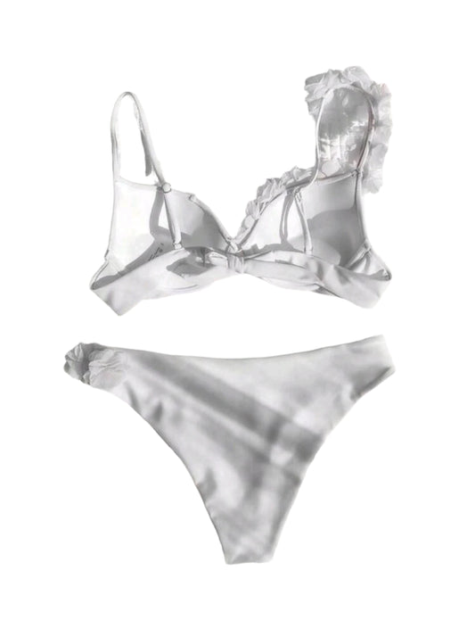 ElfogyottSHE fehér 3D virágdíszes bikini szett