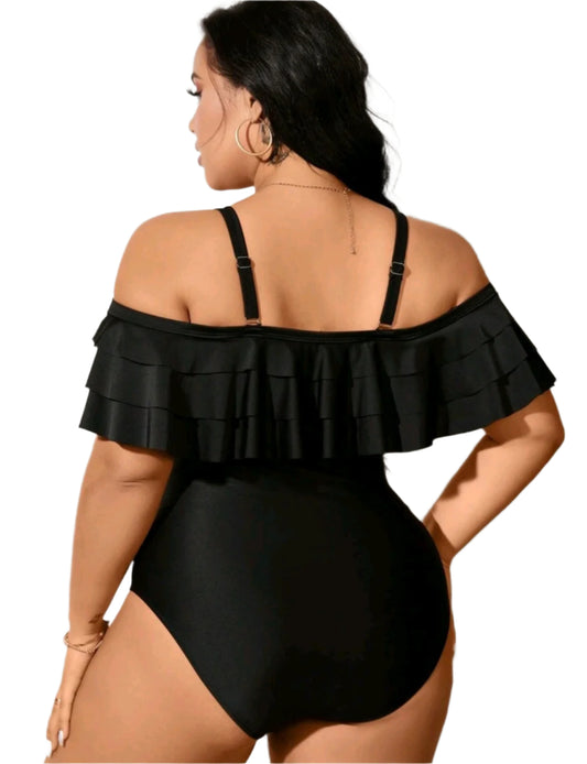 ElfogyottSHE fekete fodros egyberészes fürdőruha