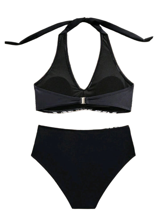 SHE fekete-fehér mintás magas derekú bikini szett