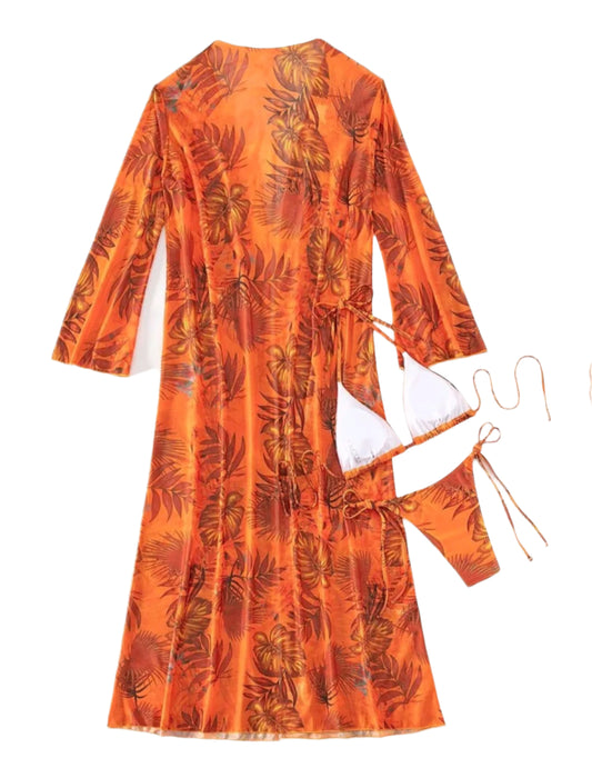 SHE narancssárga mintás háromrészes fürdőruha szett