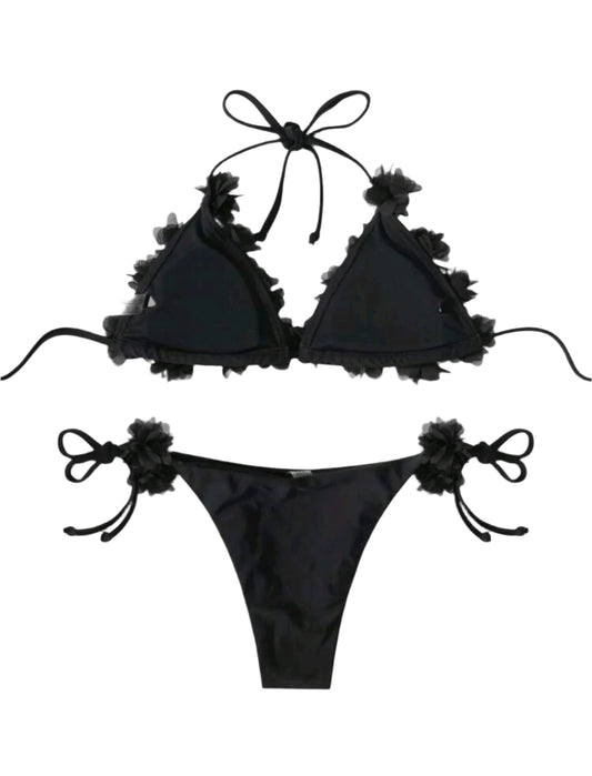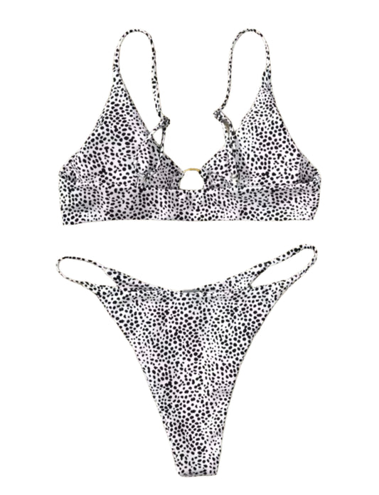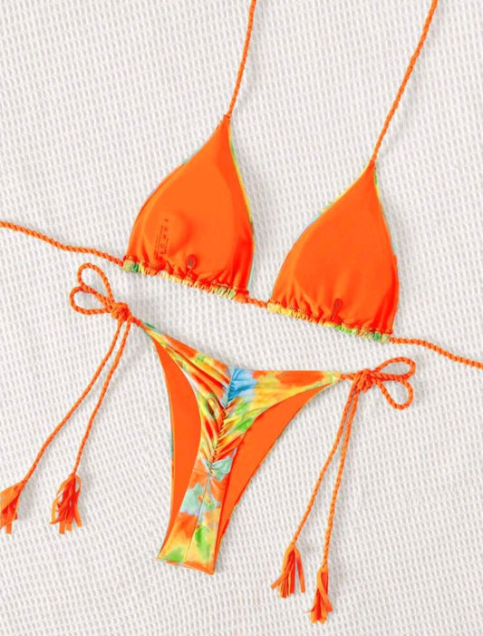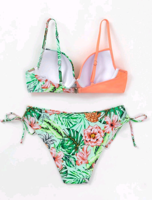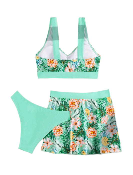 SHE zöld trópusi mintás háromrészes fürdőruha szett