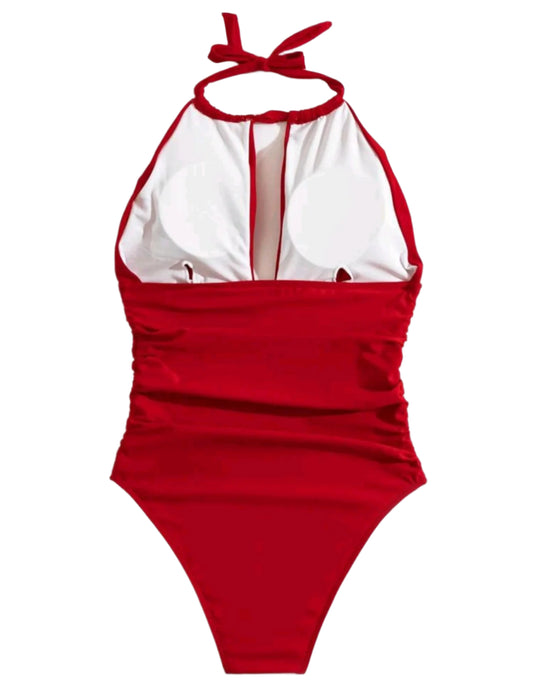 SHE piros elegáns nyakbakötős egyberészes fürdőruha