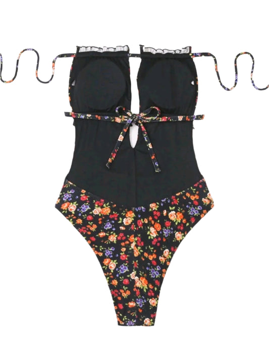 ElfogyottSHE fekete kivágott egyrészes fürdőruha