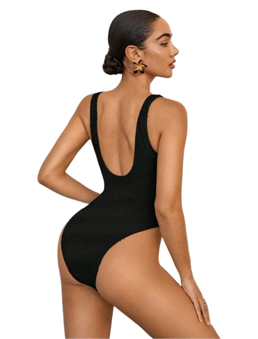 SHE fekete gyűrűs egyberészes fürdőruha