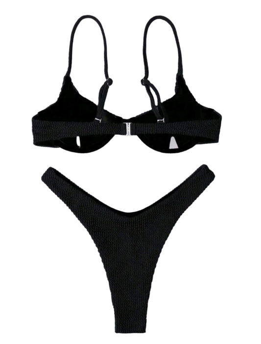 SHE fekete texturált bikini (szoknyával szettben)