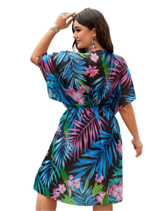 ElfogyottSHE fekete alapon trópusi mintás ruha