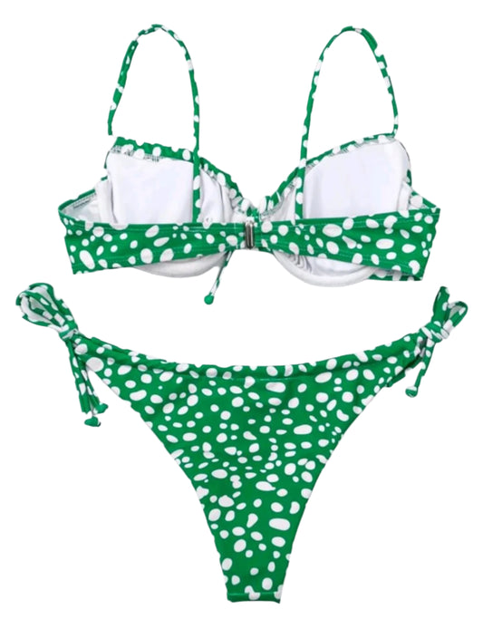 ElfogyottSHE zöld-fehér pöttyös megkötős bikini