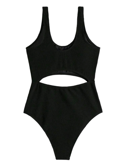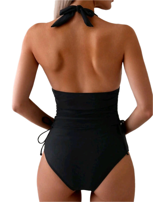 SHE fekete mélyen dekoltált egyrészes fürdőruha