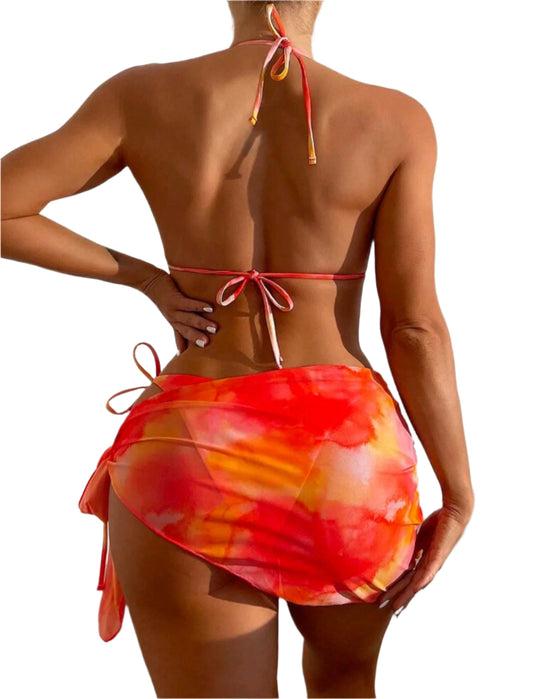 SHE rózsaszín virágmintás háromrészes bikini szett