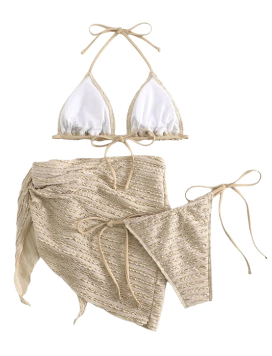 ElfogyottSHE bézs fodros háromrészes bikini szett