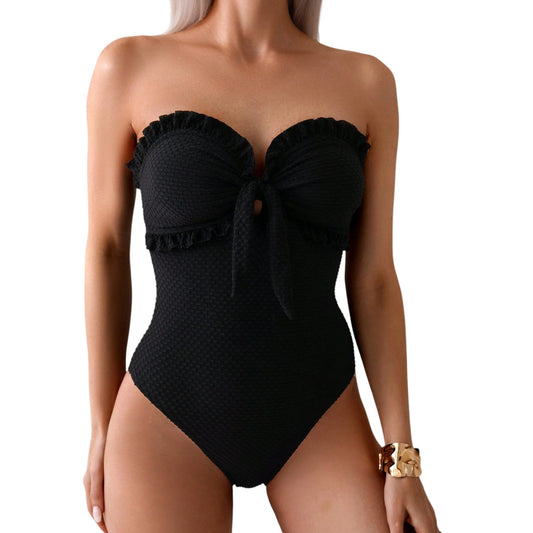 ElfogyottSHE fekete redőzött kétrészes fürdőruha