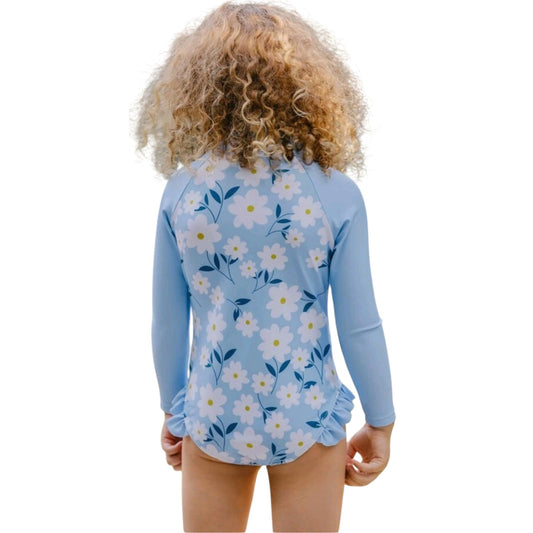 SHE világoskék virágmintás hosszú ujjú fürdőruha
