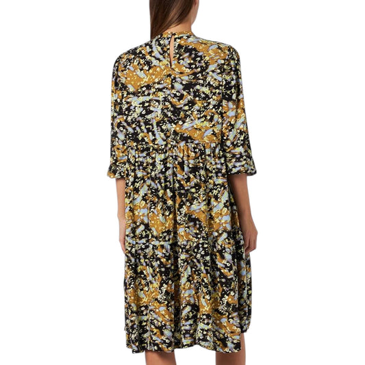 S. OLIVER sárga mintás 3/4 ujjú maxi ruha