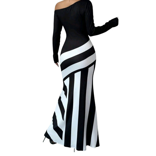 SHE fekete fehér csíkos maxi ruha