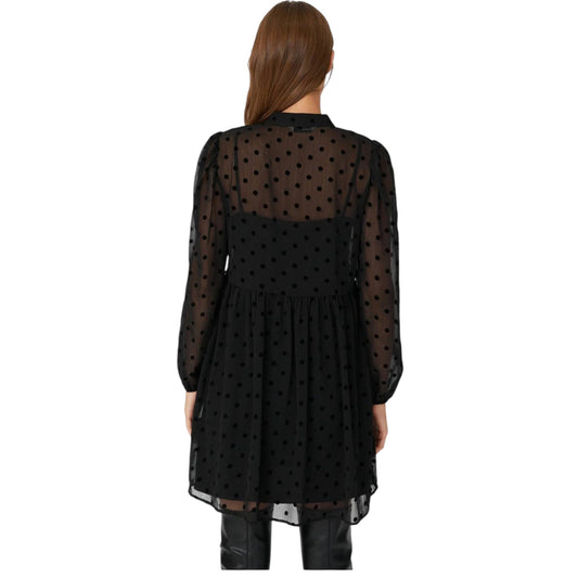 STRADIVARIUS fekete átlátszó pöttyös mini ruha