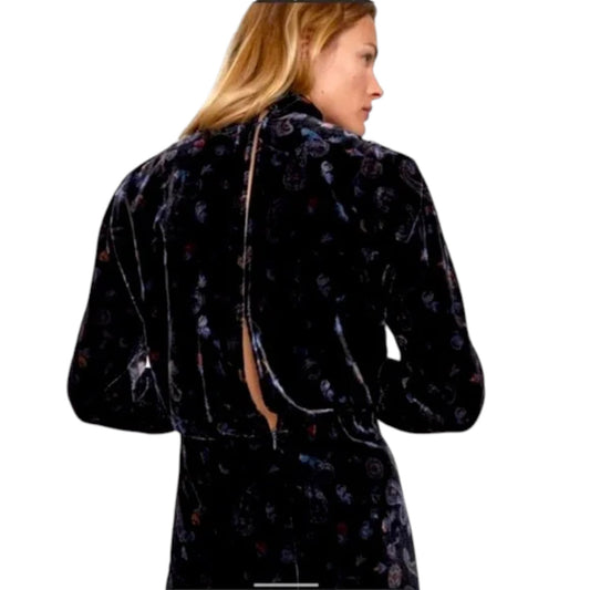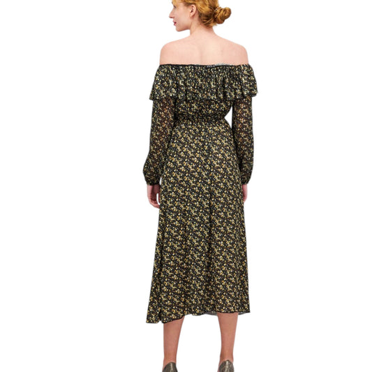 OYSHO fekete virágmintás hosszú ujjú midi ruha