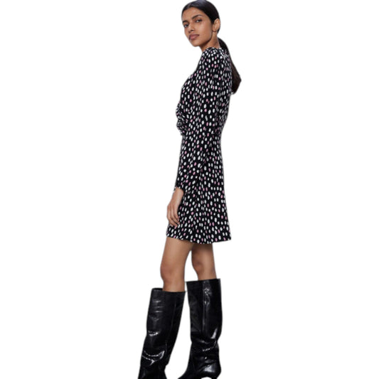 ZARA fekete mintás mély dekoltázsú mini ruha