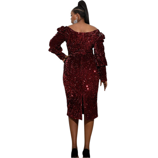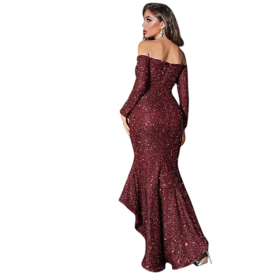 GIFFNISETI bordó flitteres alkalmi ruha
