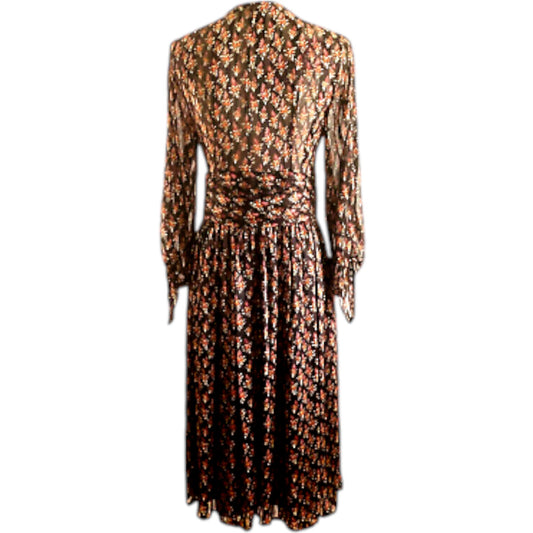 ZARA fekete mintás V-nyakú maxi ruha