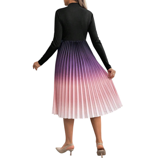 SHE fekete-lila pliszírozott midi ruha