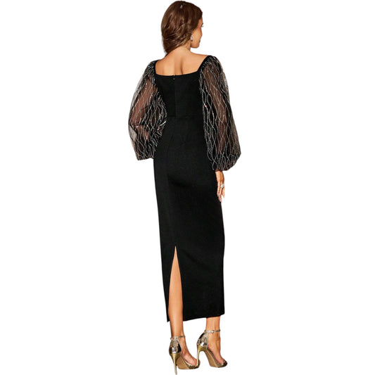 SHE fekete hálós ujjú maxi ruha