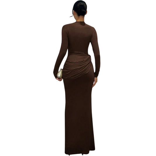 ElfogyottSHE barna hosszú ujjú maxi ruha