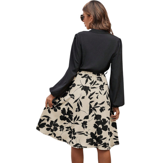 ElfogyottSHE fekete bézs virágmintás midi ruha