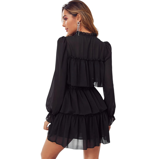 SHE fekete fodros mini ruha