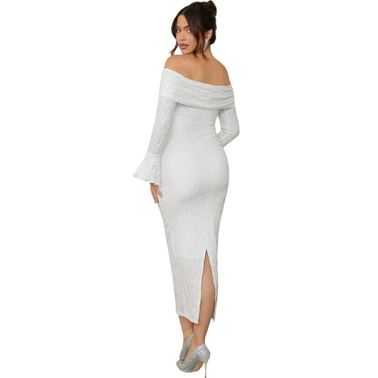 SHE fehér csipkés ejtett vállú kismama ruha