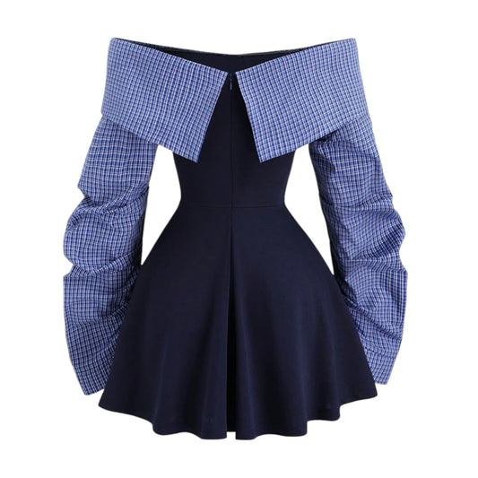 SHE kék kockás pánt nélküli ruha