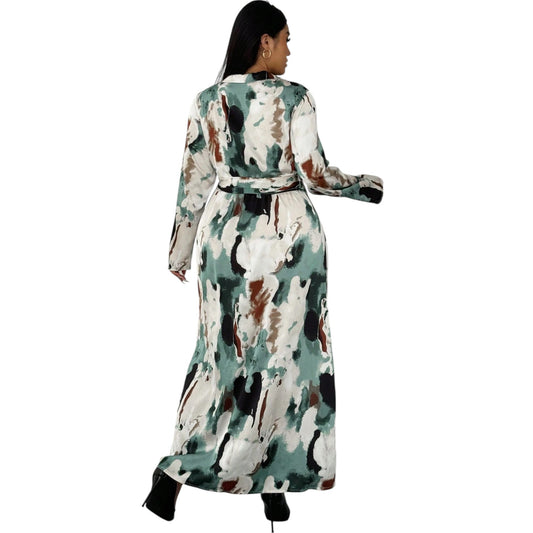 ElfogyottSHE mintás hosszú ujjú maxi ruha