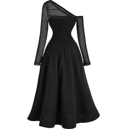 ElfogyottSHE fekete aszimmetrikus midi ruha