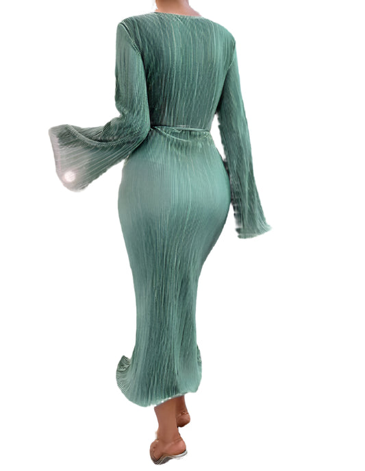 SHE zöld pliszírozott harangujjú midi ruha