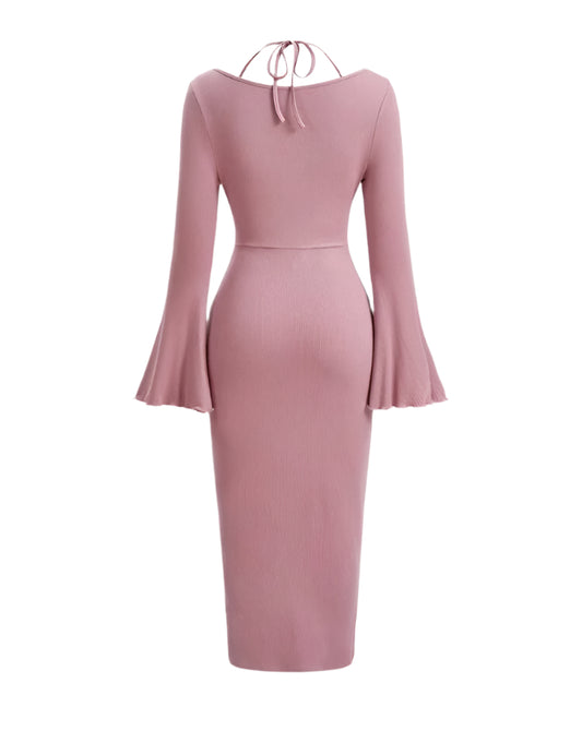 SHE rózsaszín harangujjú nyakba kötős midi ruha