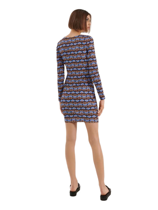 HOUSE BRAND barna-kék mintás mini ruha