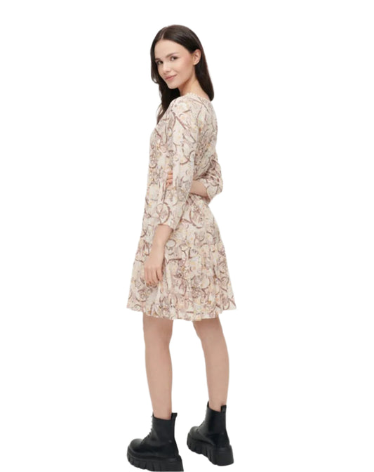 HOUSE BRAND bézs-barna mintás boho ruha
