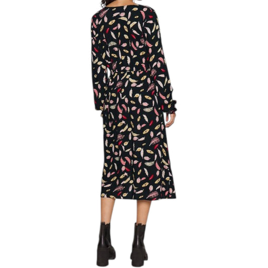 VILA fekete mintás átlapolós midi ruha