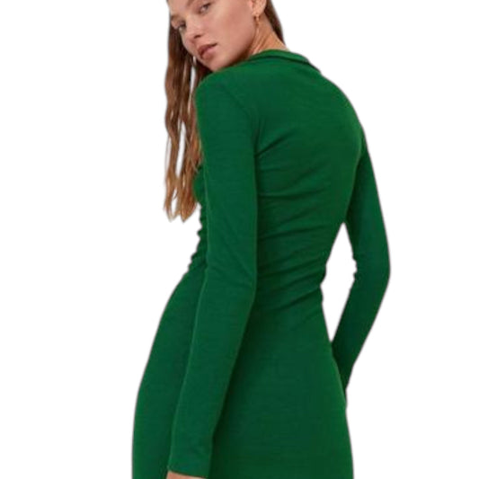 STRADIVARIUS zöld bordázott ráncolt mini ingruha