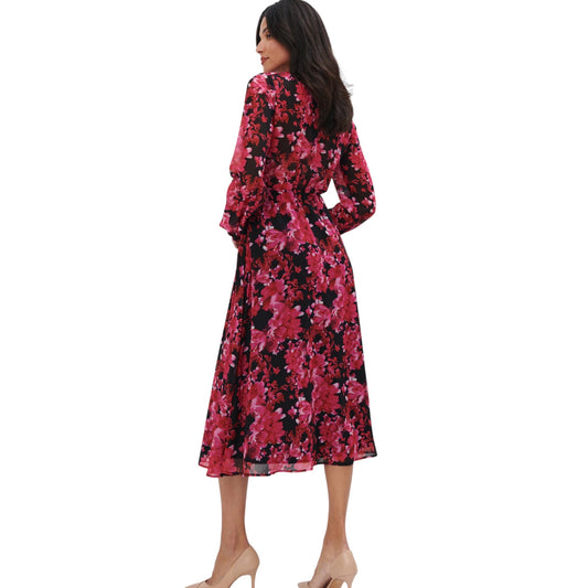 MOHITO piros virágmintás V-nyakú midi ruha