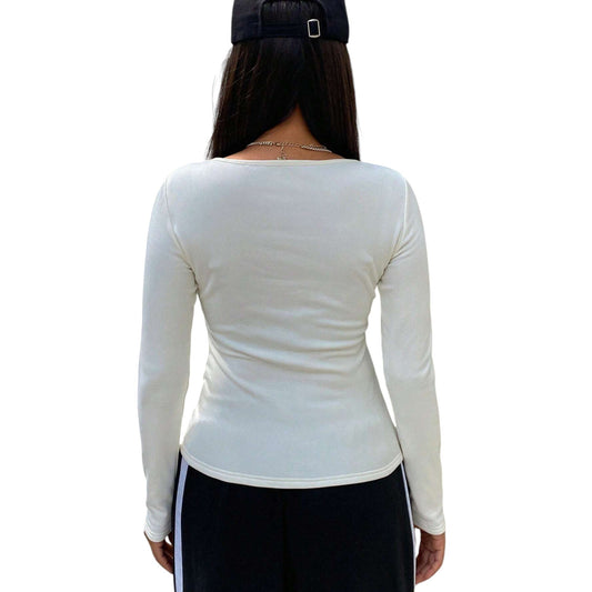 ElfogyottSHE fehér szívnyakú hosszú ujjú felső