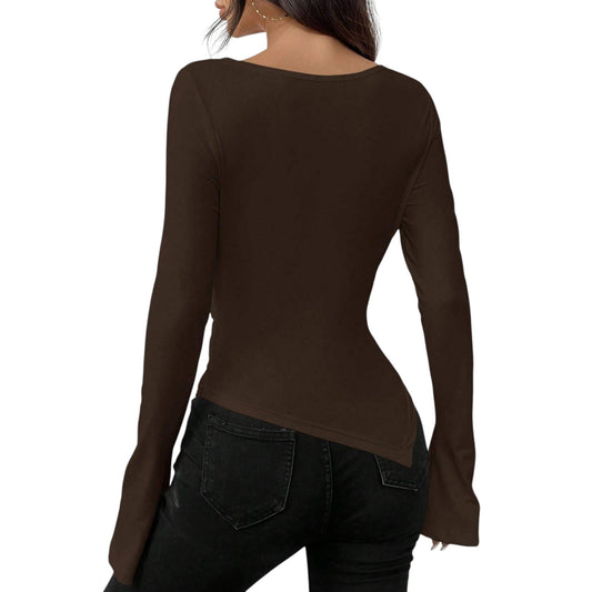 SHE barna V-nyakú hosszú ujjú felső