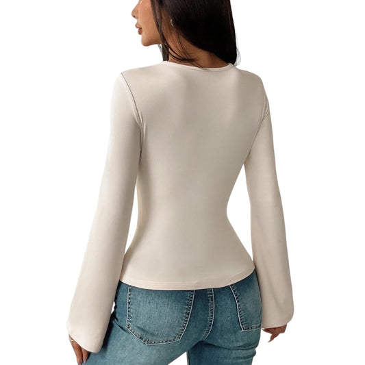 ElfogyottSHE ekrü kivágott hosszú ujjú felső
