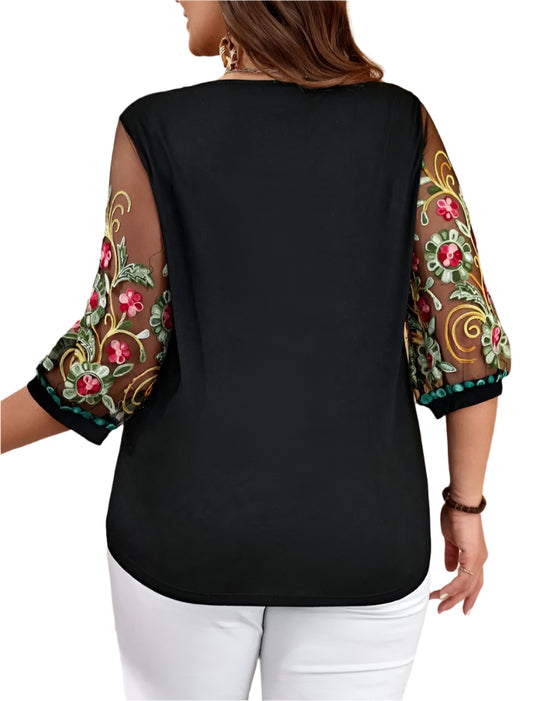 ElfogyottSHE hímzett ujjú hosszú ujjú póló