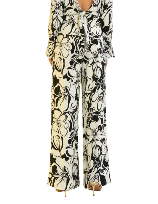 MOHITO fekete-fehér virágmintás bőszárú nadrág