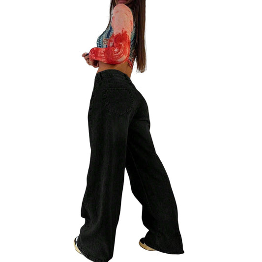 SHE fekete bő szabású farmer nadrág