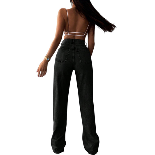 SHE fekete bő szárú farmer