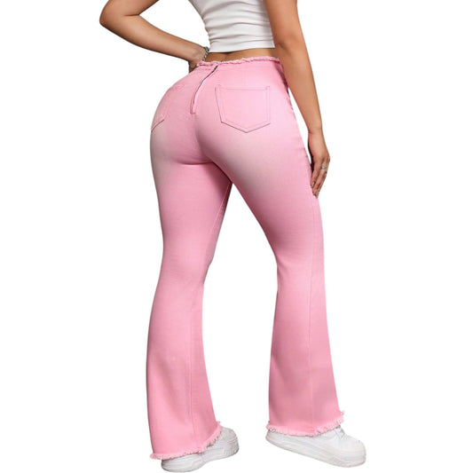 SHE rózsaszín ráncolt derekú trapézszárú farmer