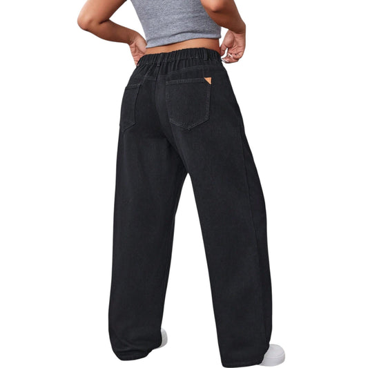 SHE fekete bő szárú farmer nadrág