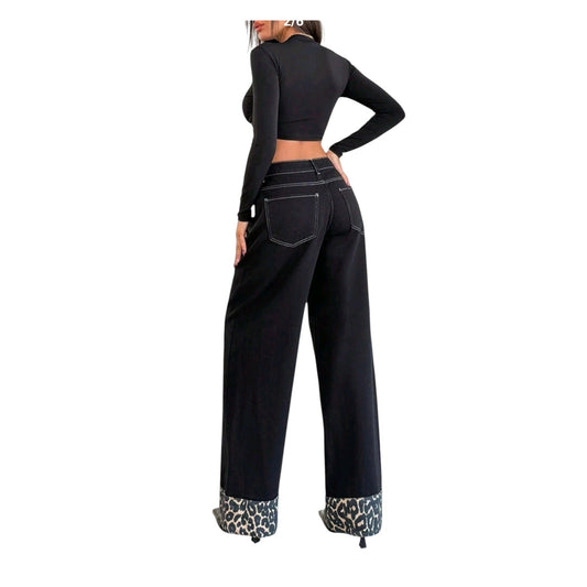 ElfogyottSHE fekete bő szárú farmer nadrág
