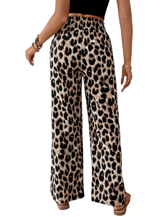 SHE leopárdmintás húzózsinóros bő szárú nadrág